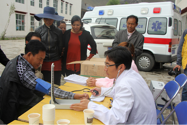對(duì)于過(guò)為尼木縣鄉(xiāng)村小學(xué)老師們的體檢,董發(fā)善醫(yī)生說(shuō):“大部分老師都患有血管神經(jīng)性頭疼和不同程度的胃病和膽囊疾病。這是由于在鄉(xiāng)村學(xué)校中,老師們工作繁忙,經(jīng)常忘記吃飯或者到了吃飯的時(shí)候就湊合吃幾片風(fēng)干肉,喝幾杯酥油茶。這是造成鄉(xiāng)村老師腸胃和膽囊疾病的原因。此外,由于老師們經(jīng)常站著講課,腰椎疾病的患病率比其他行業(yè)的要高。”在體檢的同時(shí),醫(yī)護(hù)人員還向老師們發(fā)放了常見(jiàn)疾病預(yù)防知識(shí)的宣傳材料。