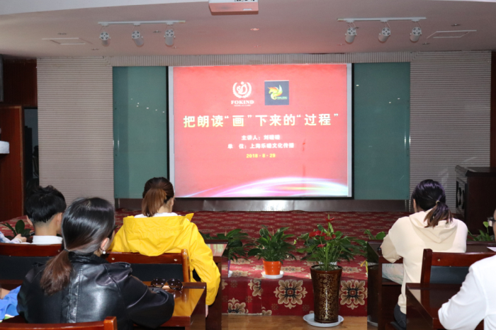 19:00,主持人宣布培訓(xùn)開始。劉碰碰老師以一句“今天天氣真好?”開始了培訓(xùn),在劉老師的提議下,以這一句話在不同情境下以不同的方式表達(dá)不同含義,大家紛紛踴躍嘗試,或是高興、或是憂傷、或是搞笑,現(xiàn)場氣氛變得輕松、愉悅,為了貼近大家的生活,劉老師特意選取了倉央嘉措的詩作為朗讀的范本,把朗讀“畫”下來,用“畫畫”的方式,將作者寫在紙上的文字,用聲音這支筆讓它立體起來,形成一個又一個豐富的“聲音的畫面”,讓聽者感同身受。