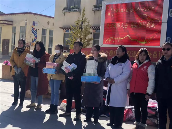 11月1日上午,西藏阜康天使基金會吉拉女士受西藏阜康醫(yī)療股份有限公司黨委書記、阜康天使基金會會長王斌先生,西藏阜康醫(yī)療股份有限公司總經(jīng)理、阜康天使基金會秘書長劉瀟瀟女士委托與西藏阜康醫(yī)院義診隊(duì)一起,攜價值一萬五千元的藥品和兩萬元的物資來到那曲市特殊教育學(xué)校,為這里的孩子們帶來了文化體育學(xué)習(xí)用品及藥品等物資。在特校校長次仁拉姆的組織下,特校師生列隊(duì)歡迎我們的到來,還精心準(zhǔn)備了錦旗和潔白的哈達(dá)。