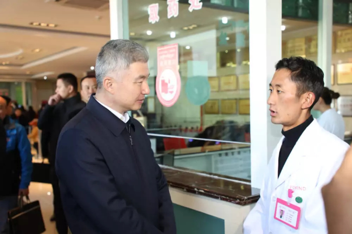 西藏阜康醫(yī)療股份有限公司黨委書記、董事長(zhǎng)王斌率全院院級(jí)領(lǐng)導(dǎo)陪同西藏自治區(qū)黨委副書記、政府常務(wù)副主席莊嚴(yán)一行進(jìn)行調(diào)研