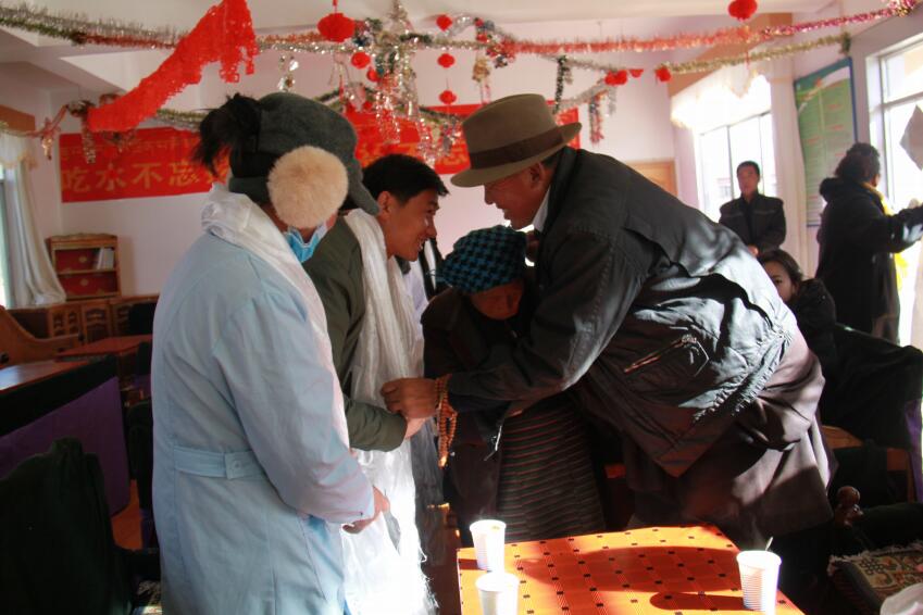 下午,我們又來到墨竹工卡縣扎西崗鄉(xiāng)敬老院,對老人進(jìn)行義診。當(dāng)天,我們一共對300位老人進(jìn)行了免費(fèi)體檢,發(fā)放了價(jià)值10000余元的藥品。
