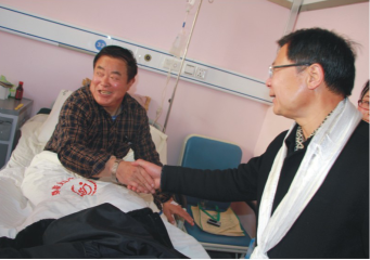 每年春節(jié)及藏歷新年院領(lǐng)導(dǎo)都會(huì)親自帶隊(duì)慰問(wèn)病人,這已成為“阜康”與患者間特有的一種情感交流。一聲聲真誠(chéng)的祝福、一陣陣爽朗的笑聲,描畫(huà)出- -幅和諧的醫(yī)患關(guān)系圖。