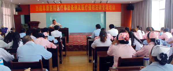 為了加強我院醫(yī)療質量和醫(yī)療安全管理,防范醫(yī)療糾紛和醫(yī)療損害及事故,提高醫(yī)療糾紛調處能力和水平,創(chuàng)建和諧的醫(yī)患關系,2014年6月14至15日,我們特別邀請到西藏偉豪律師事務所律師同時也作為我院法律顧問的胡可律師到我院開展為期兩天的“關于醫(yī)療事故條例及醫(yī)療侵權”的法律專項培訓。