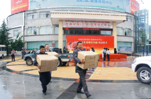 西藏阜康(國(guó)際)健康體檢中心王斌董事長(zhǎng)首先向?yàn)榇龠M(jìn)西藏和諧發(fā)展長(zhǎng)期駐村(居)的工作人員表示崇高的敬意!據(jù)了解,本次為拉薩市267個(gè)駐村(居)工作隊(duì)贈(zèng)送的小藥箱中配備了急救類(lèi)、解熱鎮(zhèn)痛類(lèi)、治感冒類(lèi)、止咳化痰類(lèi)、抗菌藥物類(lèi)等14類(lèi)共31種常用藥品及電子血壓計(jì),總價(jià)值約20萬(wàn)元。王斌董事長(zhǎng)在贈(zèng)送儀式上講到“本次開(kāi)展西藏阜康(國(guó)際)健康體檢中心向駐村(居)工作隊(duì)贈(zèng)送藥箱活動(dòng),旨在為民解困難,為民辦實(shí)事,為我們駐村(居)工作人員健康做好堅(jiān)實(shí)的后盾,促進(jìn)西藏穩(wěn)定和諧發(fā)展。”王斌董事長(zhǎng)希望能給駐村(居)工作人員帶來(lái)健康,同時(shí)也希望能在黨的群眾路線(xiàn)教育實(shí)踐活動(dòng)中獻(xiàn)出民營(yíng)企業(yè)的一份綿薄之力。