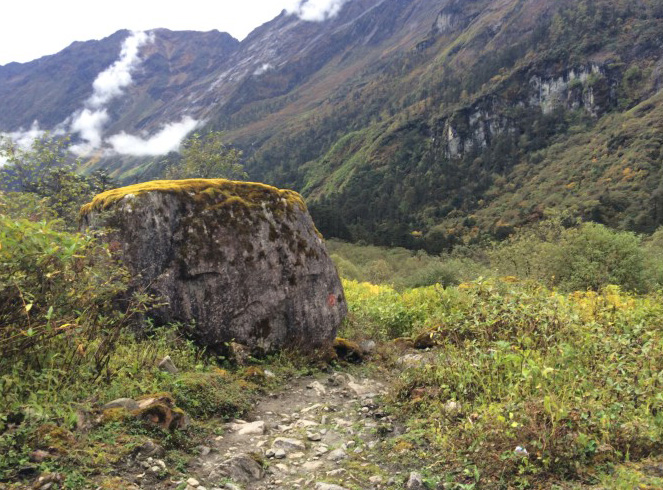 接下來順江而下的兩三個小時的路略微好走些,雖然布滿碎石斷巖,稍微不慎就會絆倒滑摔,但比起在冰天雪地、刺心寒凍的雪風雪雨中行走這已經是無比的輕松了。