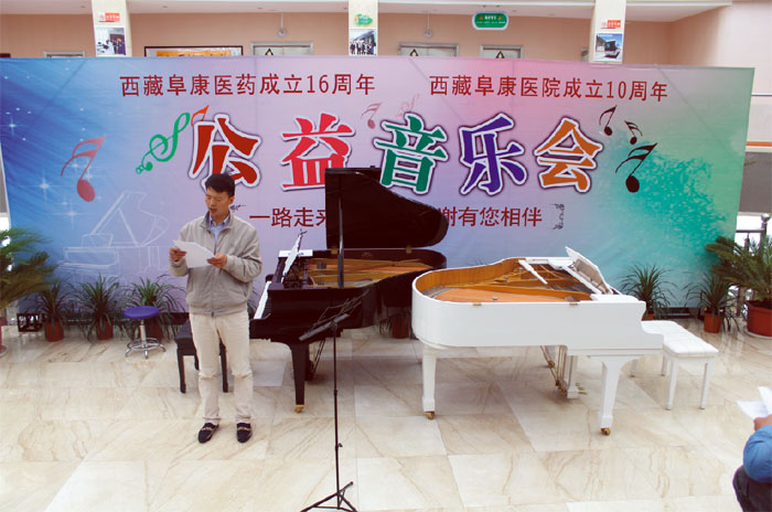 為了慶祝阜康醫(yī)藥發(fā)展有限公司成立十六周年,阜康醫(yī)院成立十周年,2015年6月21日至23日,西藏阜康集團公益音樂會在西藏阜康(國際)健康體檢中心、和香格里拉大酒店成功舉辦,本次音樂會邀請到了國外友人廣瀨清隆先生及邊天、董樂晨、周于蒨四位音樂家來到西藏為大家公益演出,參加音樂會的還有著名網(wǎng)絡歌手邊巴德吉,本次音樂會受到了社會各界人士的一致好評。