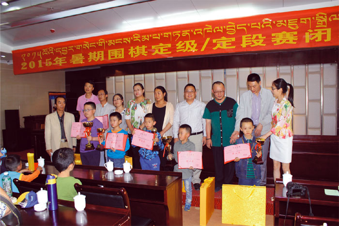 拉薩市2015年暑期圍棋定級(jí)/定段賽于7月26日正式拉開(kāi)帷幕,比賽采取“循環(huán)積分制”,40名參賽選手經(jīng)過(guò)兩天的比拼,最終由彭子杰、任天澤、陳浩分別榮獲定級(jí)/升級(jí)賽前三名,常新昊、許蘇陽(yáng)、肖墨愷分別榮獲定段/升段賽前三名。