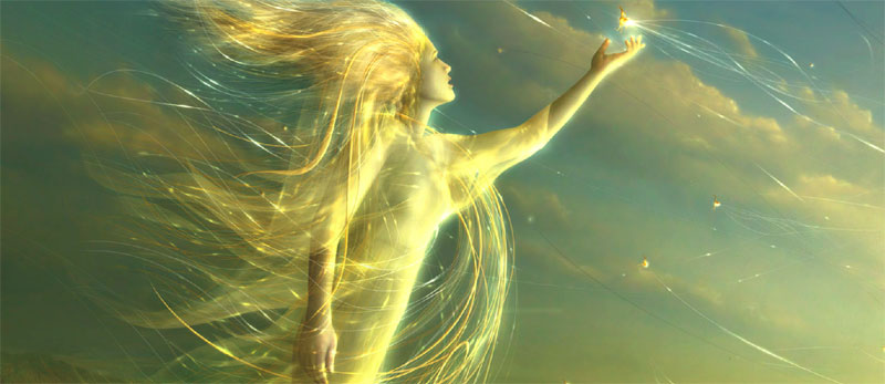 一天,她被主宰大地的風發(fā)現(xiàn),風威嚴壯觀,把塵埃姑娘吹得飄忽不定。她輕飄的身軀,被風一吹,再也無法降落到地面,任由風把她帶向遠方。