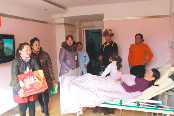 由陳彬總經(jīng)理、敖德秀副院長(zhǎng)、張治副院長(zhǎng)、何靜院長(zhǎng)助理帶隊(duì)的雙節(jié)慰問小組分別于2月6日集中慰問春節(jié)期間堅(jiān)守崗位的專家、2月8日(大年初一)慰問醫(yī)院各科室、2月9日(藏歷初一)慰問不能出院與家人團(tuán)聚的患者,院領(lǐng)導(dǎo)代表公司和王斌董事長(zhǎng)為他們送去了節(jié)日的關(guān)懷。