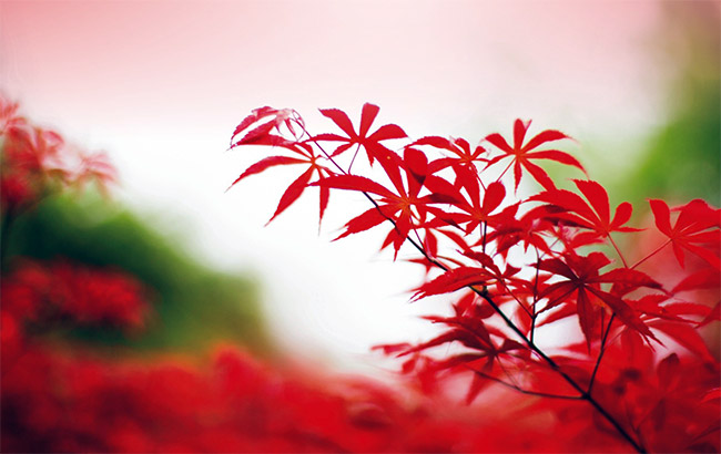 霞光猶殘楓染透,樹(shù)籠枝寒色依紅。