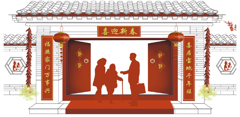 三十早晨起來就開始收拾屋子,給電動(dòng)三輪車充電,貼春聯(lián),包餃子,準(zhǔn)備晚上的酒菜,忙得兩位老人不亦樂乎。村里三鄰四舍互相拿著東西串門。