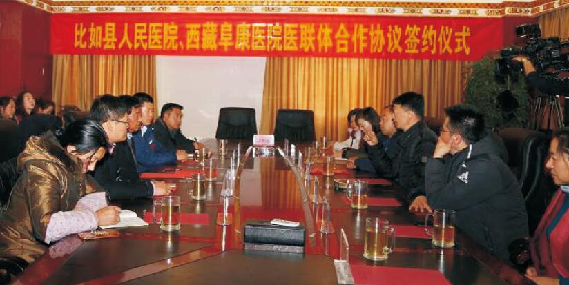 下午簽約儀式由縣委常委楊復(fù)洪主持,阜康醫(yī)院黨委書記兼董事長王斌與比如縣衛(wèi)計委主任兼人民醫(yī)院院長劉琳共同簽署了組建醫(yī)療“聯(lián)合體”的協(xié)議。 以緩解當(dāng)?shù)厝罕娍床∵h、看病難,并提高當(dāng)?shù)蒯t(yī)療技術(shù)水平,簽約儀式結(jié)束后王斌在劉琳院長的帶領(lǐng)下參觀了比如縣人民醫(yī)院、藏醫(yī)院等地。